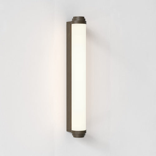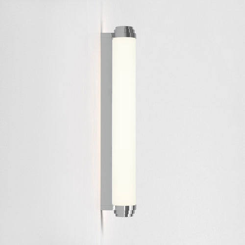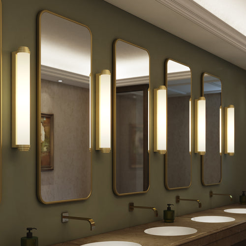 The Burlington 600 is an elegant Art Deco inspired wall light with integrated LED light source, ideal for placement above or beside bathroom mirrors or in corridors. Mountable vertically or horizontally with options for dimming to suit both residential and commercial settings, the Burlington's cylindrical design creates a sophisticated ambiance.