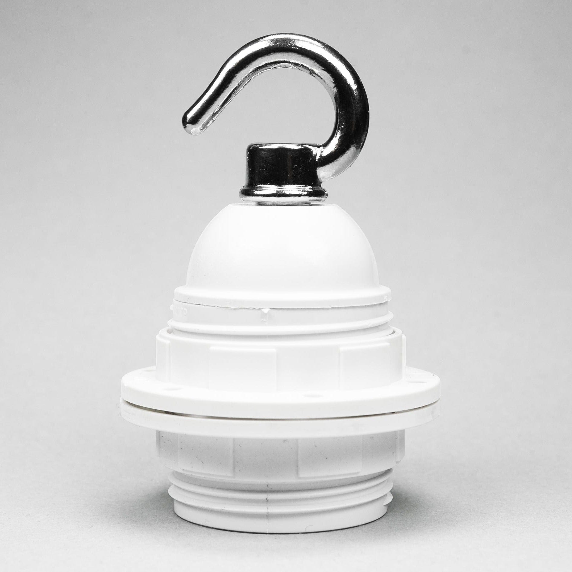 E27 White Plastic Wide Ring Lampholder with silver hook
